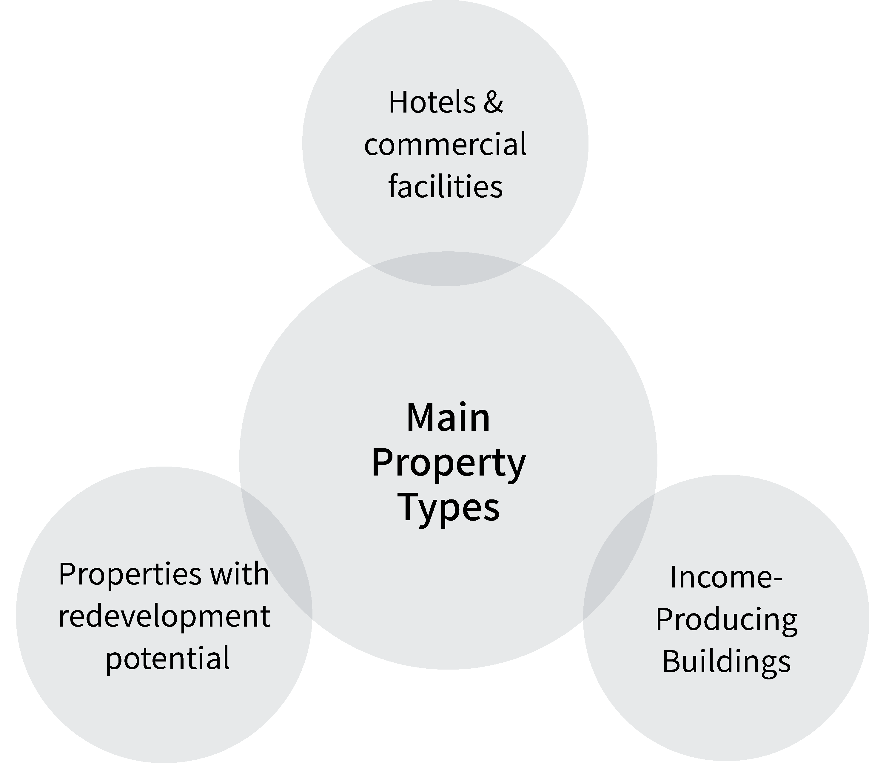 Offices, commercial facilities, residential properties, hotels, development land